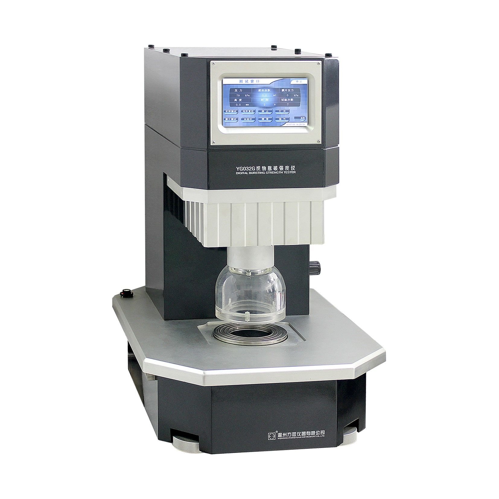 用途:用于手術單、手術衣和潔凈服、針織物、無紡布、皮革、土工合成材料等脹破強度(壓強)和擴張度的測試。